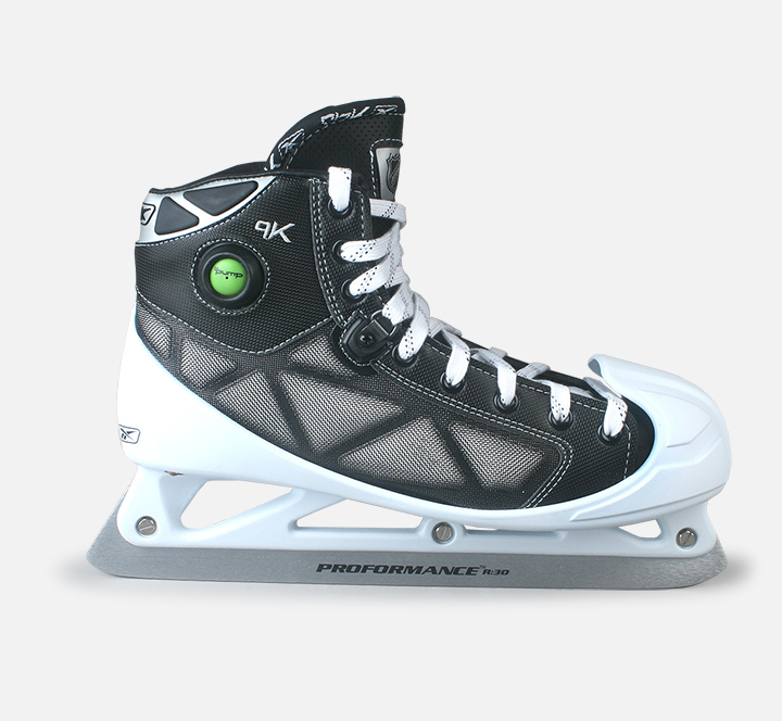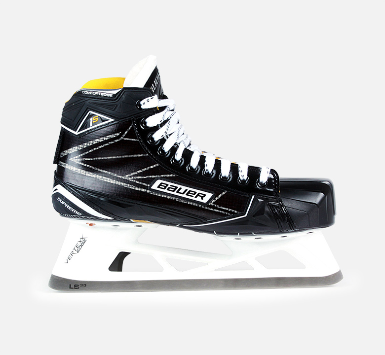 That’s why (last season) I tried the Bauer ones, the new Bauer (Supreme 1S), which I actually liked — I was surprised that I liked them right away. You’re actually able to, when you’re in the butterfly, you can get the steel onto the ice earlier when you push to the side. So, uh, I think you gain like 10 percent or something like that on the angle when you’re pushing sideways. So that’s something that actually made me want to try them, and so I’ve tried them maybe a couple, three times, but so far I’m thinking this is the pair I’m going to use for the season.