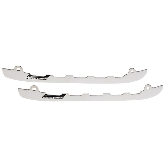 CCM hockey stock steel has taken major leaps forward in recent years. Top end CCM RBZ line skates now come with HyperGlide steel which is another polished steel. This steel however was finished with the polish and is actually embedded into the side walls. This allows the steel to be stiffer when gripping the ice and creates a nice smooth finish while sharpening helping the steel glide through the ice. It also helps resist knicks and retains an edge better however this steel can not be stoned after sharpening with a traditional hand stone. If your local shop does not have the special hand stone for coated steels it is best left in stoned but stoning can remove the mirrored coating which ruins the steel.